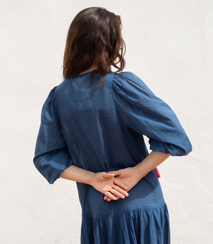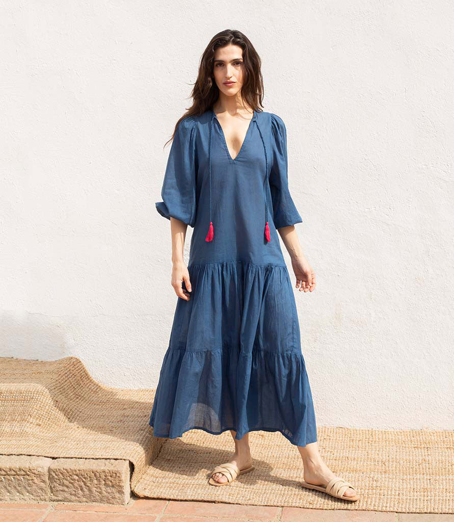Este vestido ha sido teñido y confeccionado a mano por expertos artesanos.