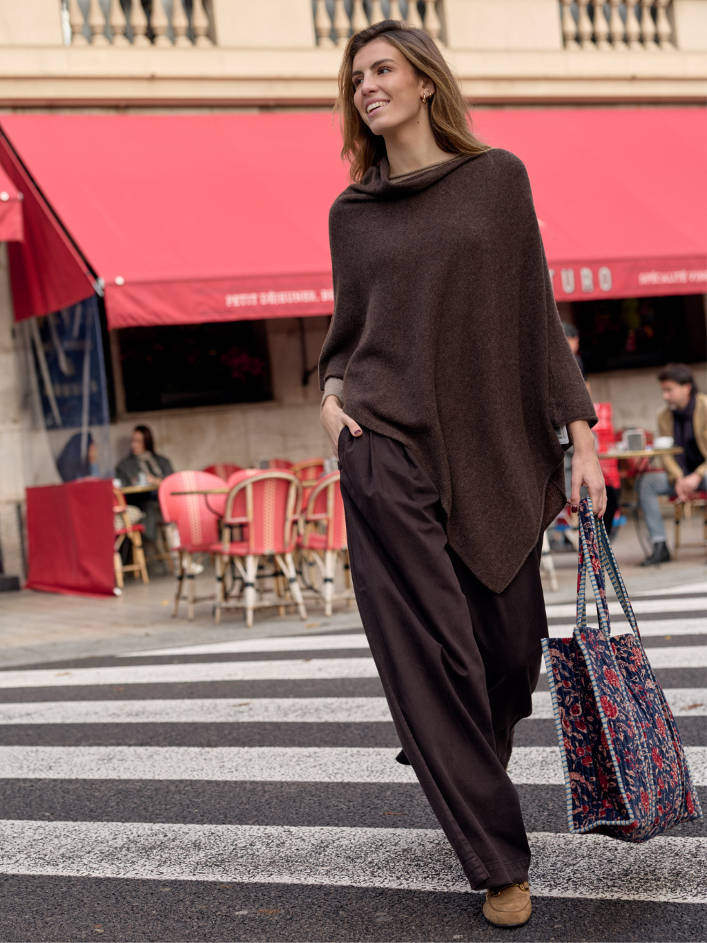 Ava Bicolor Cashmere Poncho, Wood and Brown