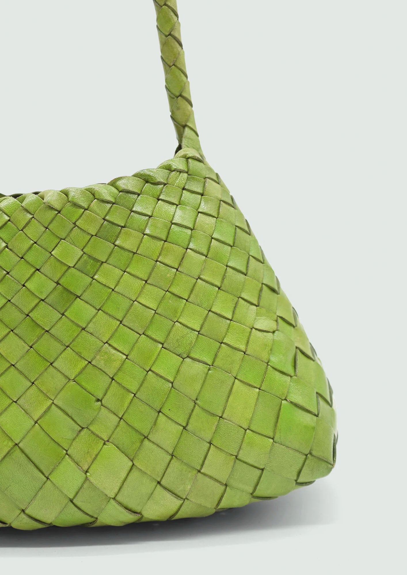 Rosanna es una baguette de cuero tejido a mano que fusiona funcionalidad y estilo con una silueta versátil y sofisticada. Su diseño destaca por el trenzado irregular de sus tiras de cuero, que se afinan delicadamente hacia el borde. Incluye un dije de San Cristóbal, patrón de los viajeros, cosido a mano en su interior. Diseño ideal para llevar al hombro.