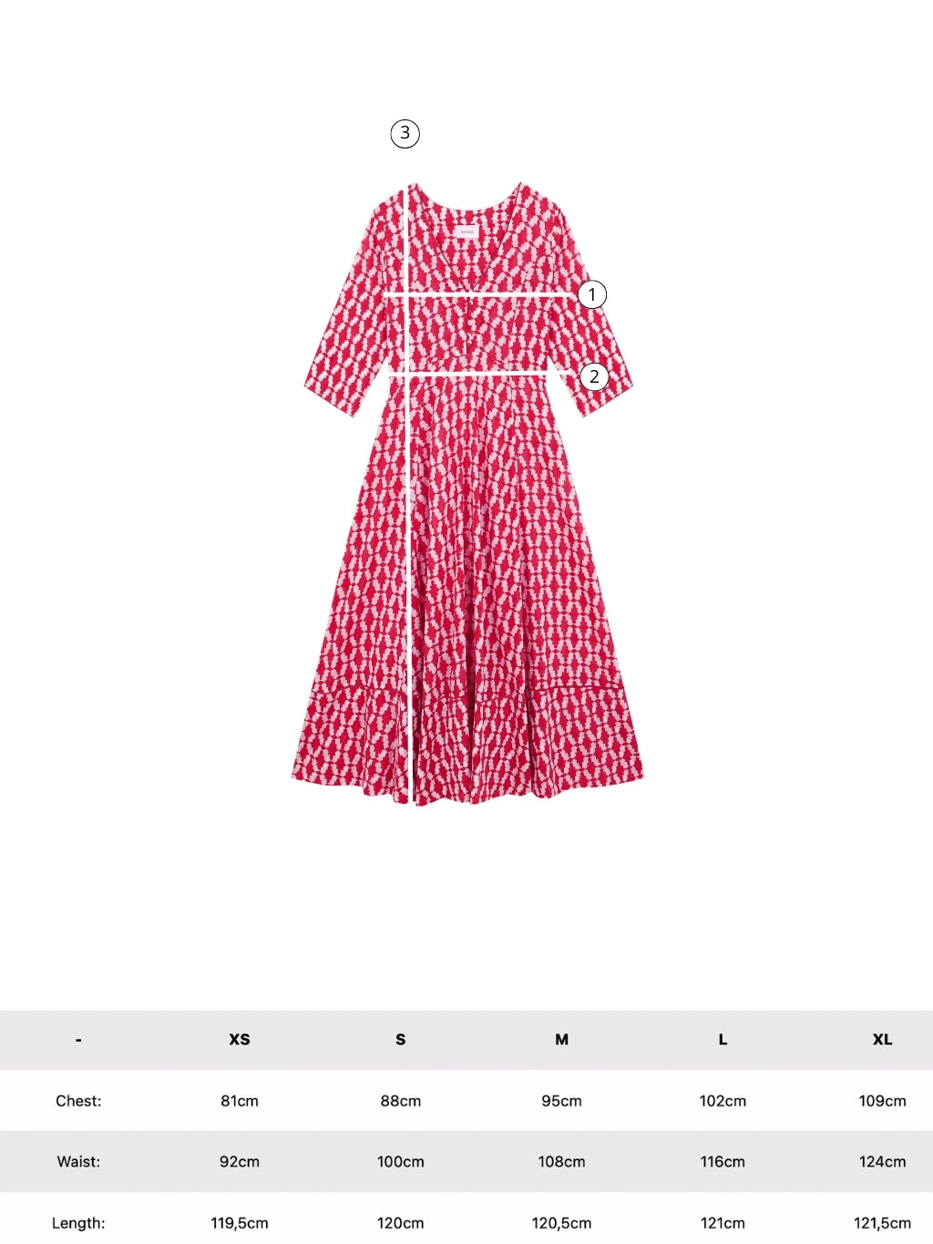 Este vestido ha sido estampado a mano con la técnica artesanal del blockprint, lo cual convierte cada prenda en única.